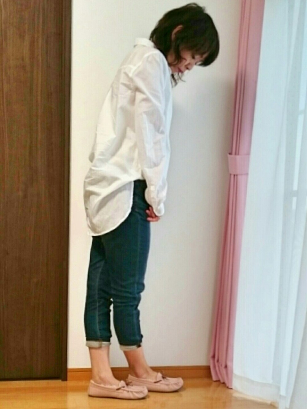 おはようさんです😊 なんか猫背😁 今日ゎ昨日のお買い物のオ―ルドネイビ―からのロングシャツにピンク⤴のモカシン❤ を使ったコ―デ😁 シャツの長さ&モカシンの色味可愛くて🎵⤴💕 アクセゎシルバ―に✨ 秋物色々と買ってきました✨ 楽しかったなぁ🍀 今日ゎ2ヶ月に一回の足ネイルの日🍀❤楽しみだな🎵 いつもフォローコメントセ―ブ❤ありがとうございます😆💕✨ 又寄ってくださいね✨