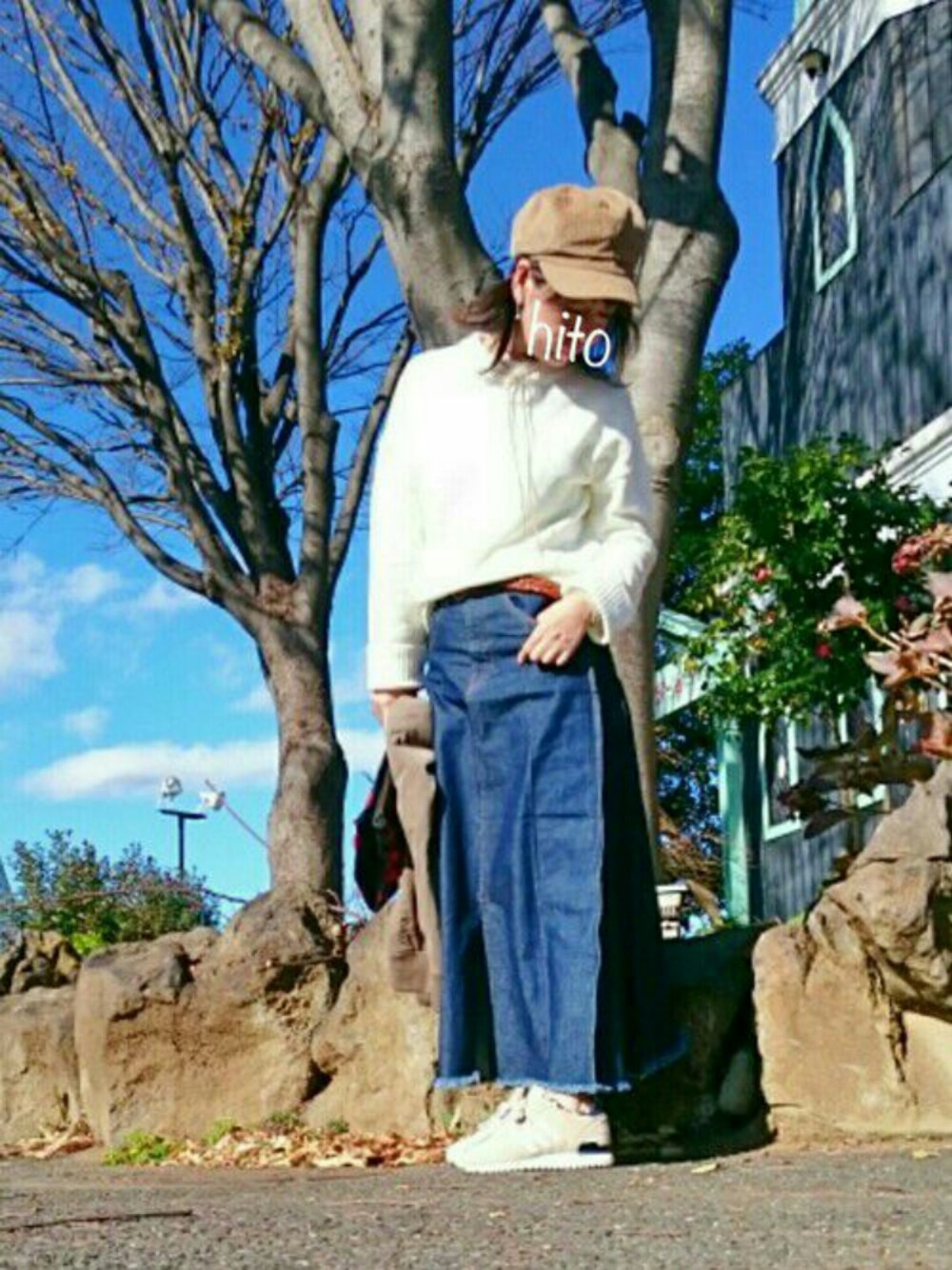 hito のデニムスカート「デニム切替ロングスカート」を使ったコーディネート