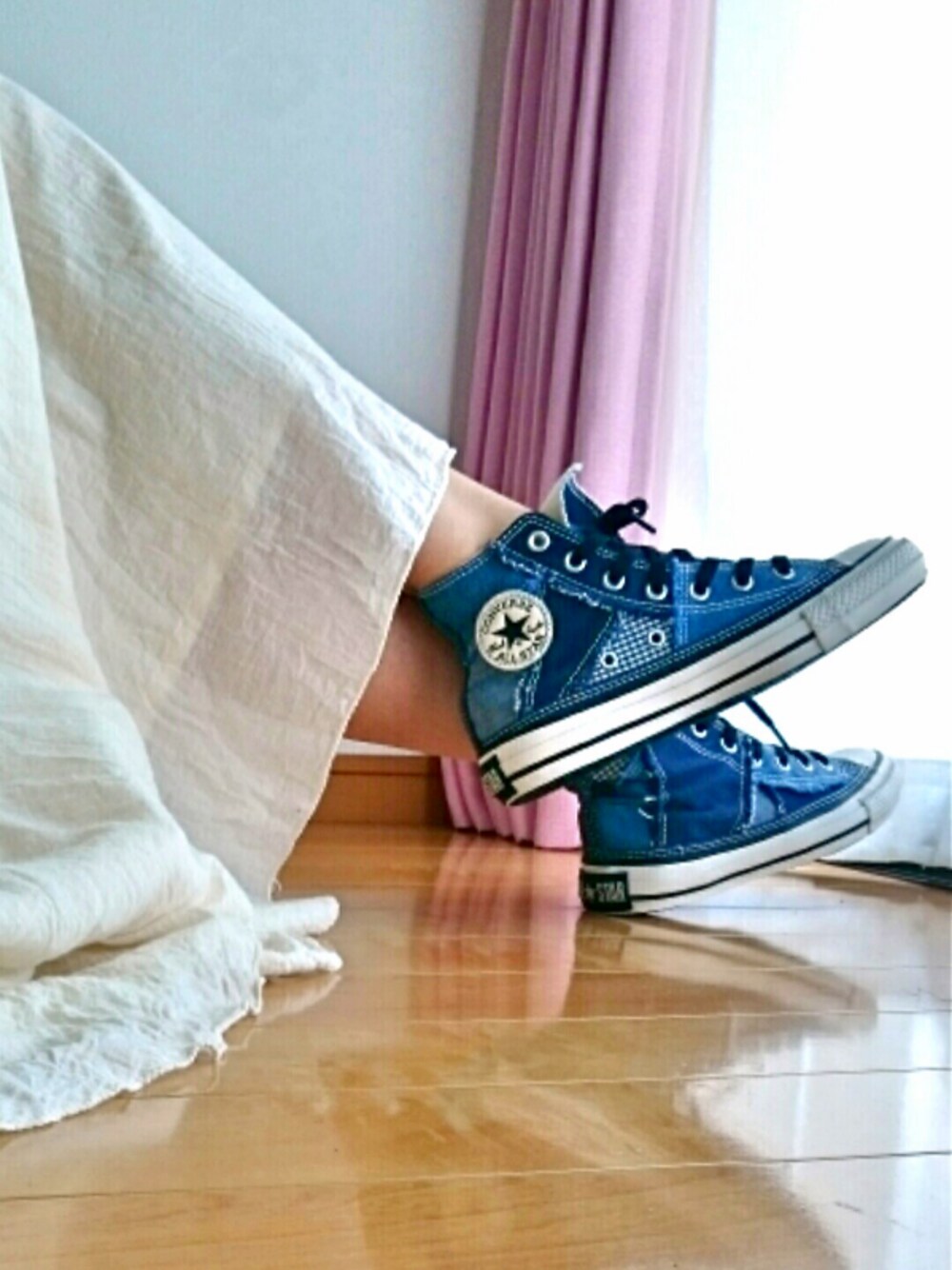 hito のスニーカー「converse コンバース AS CLASHPATCHED HI オールスター クラッシュパッチド ハイ 32664896 INDIGO」を使ったコーディネート