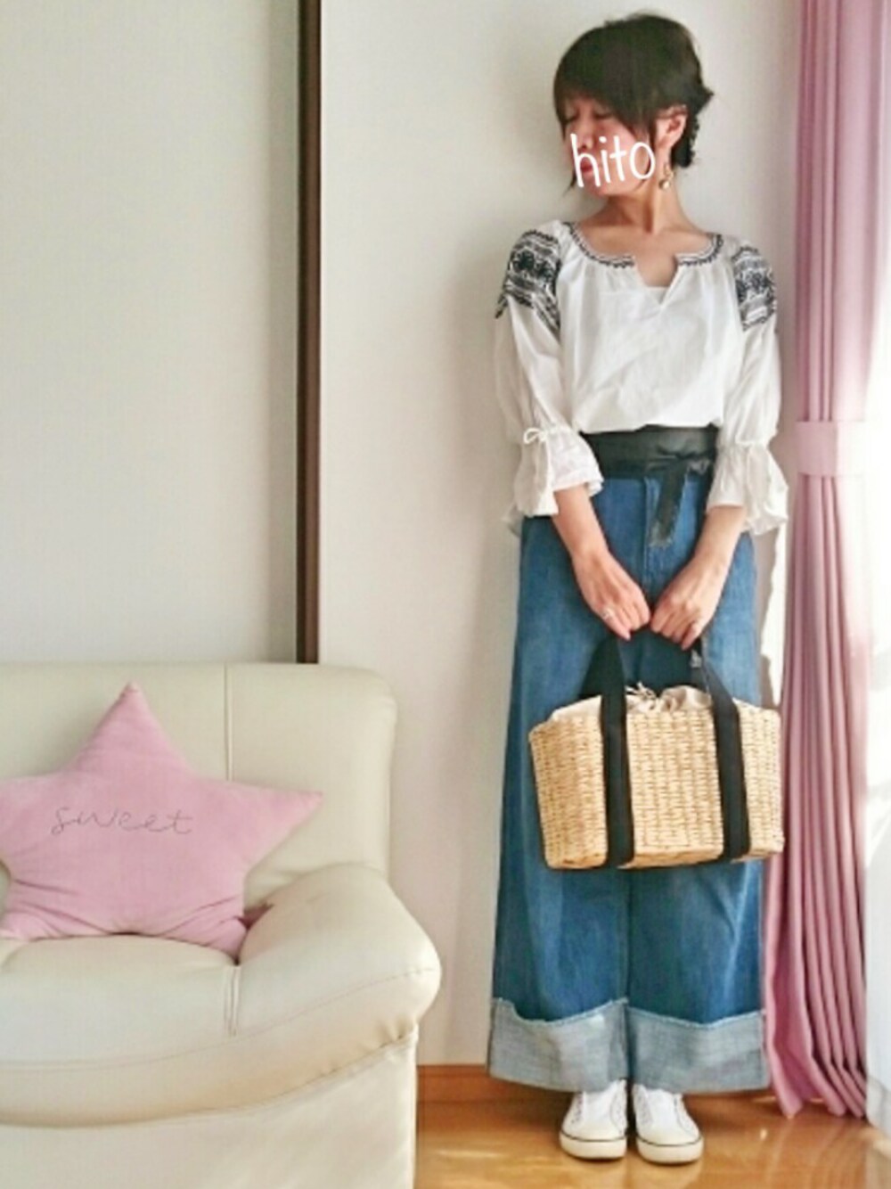 hito のパンツ「【S/S】カットオフウエストロールアップデニム」を使ったコーディネート