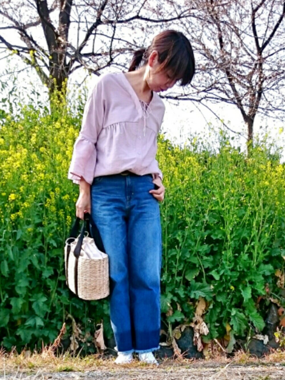お疲れ様です☀ いいお天気✨ 昨日とても人なっこいシオンちゃんが私のコ―デ真似してくれましたぁ✨(小窓にて) わたしゎ良く人の真似っこするんですが、シオンちゃんもポ―ズから入ってくれて すべてがシンクロ率120%です💛💛💛 しぃちゃんありがとう🎵 皆さんもとても優しくて、なっこいシオンちゃんの所に遊びにいってみてくださいね😃 きようゎ菜の花とサクラ🌸の近くで まだ満開ゎ先のような気もしますが 今週末なんですかね⁉ わたしゎ仕事だからダメやん‼ きようのコ―デのトップスの方が私に合ってる気もします✨ ワイドデニム又買ったぁ✨このデニムかっちょよい🎵 三月にワイドデニムとパンツたくさんかったよね⤴😭😅😱 ピンクフェス3終わったらコ―デボチボチ出しますね😆 ピンクフェス3も後1週間ちょいですね✨ 素晴らしい広告を作ります😃気合いゎすごいの毎回✨でもモデルゎおばさんだから😅 そこんとこよろしくぅ👌✨😁 いつもフォローコメントセ―ブ❤ありがとうございます✨ 又寄ってくださいね✨