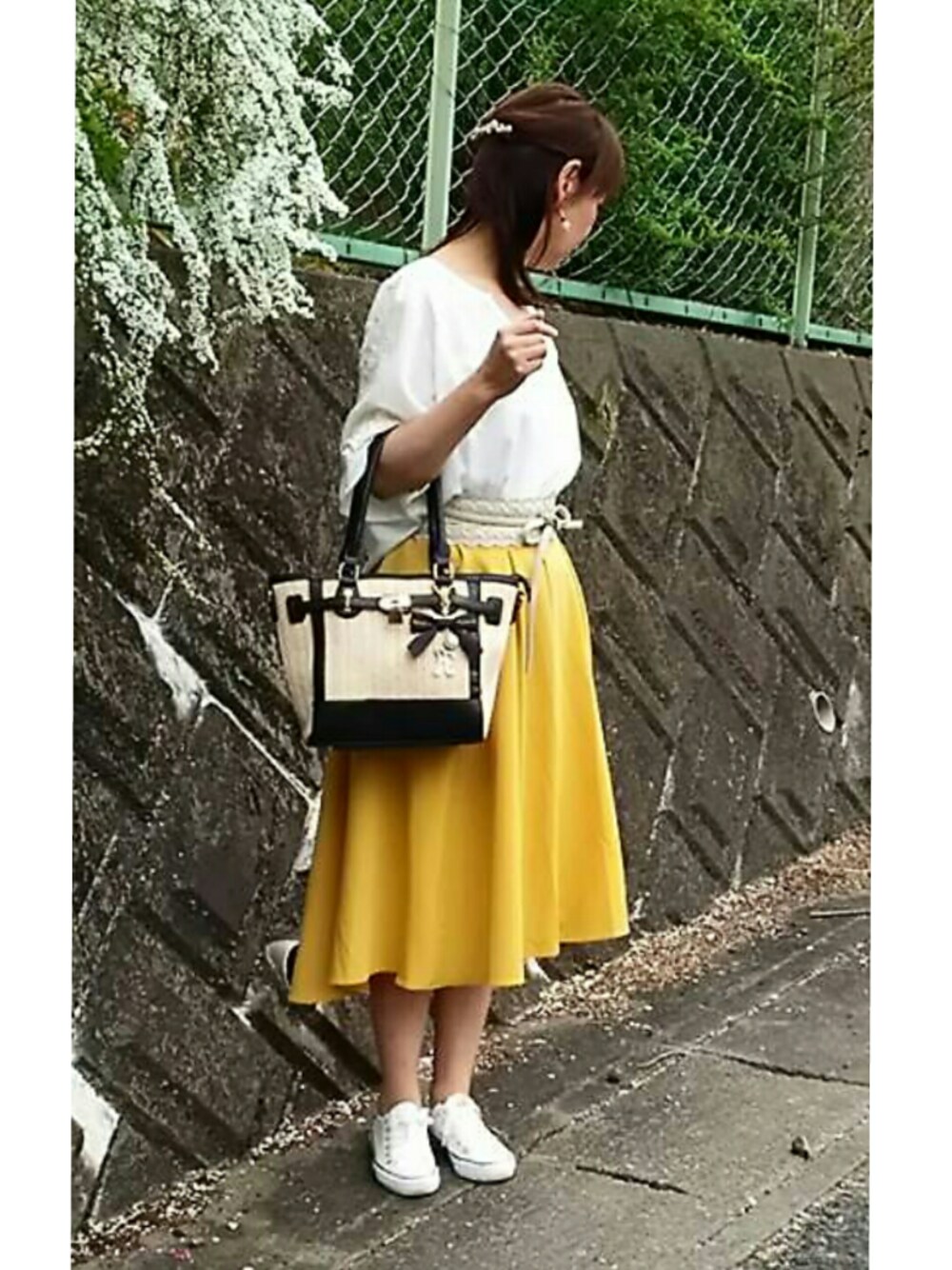 こにゃにゃちわ⤴😁 今日ゎライブコ―デです✨ しまむらの黄色のスカートと レ―スのサッシュベルトにトップスゎAZUL袖に刺繍入っているの😆💛 見えにくいかな✨ スニーカーで崩してみました✨ 楽しんできますね🎶 わたしなんかのコ―デをフォルダに混ぜてくれていて本当にありがとうございます😆💕✨ おばさんめっちゃ嬉しいです💛 今後ともよろしくお願いしますペコリ いつもフォローコメントセ―ブ❤ありがとうございます😃 又よってくださいね✨