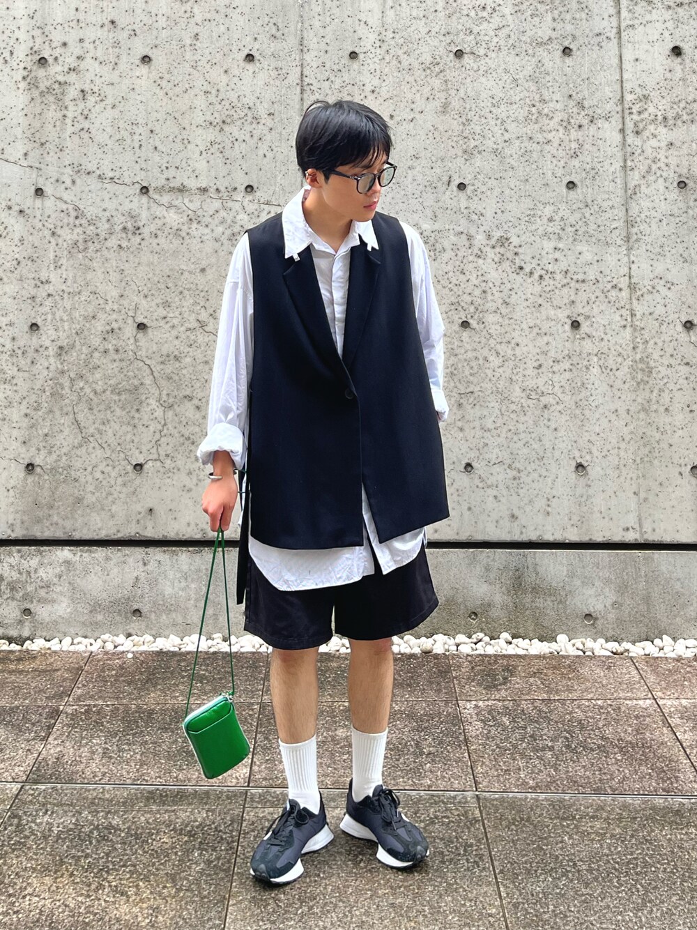 メンズではあまり見ないショーツにジレの組み合わせ。 どこかレディースライクな合わせだけれど個人的には、好きな合わせ方です。 足元は革靴ではなくスニーカーで外しを…🕊