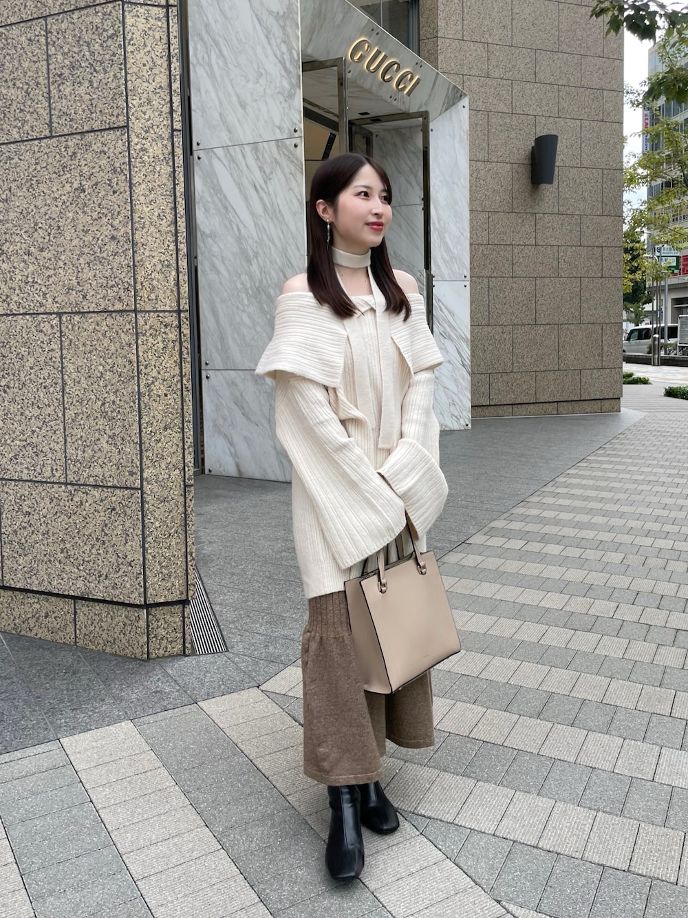 yukaのニット/セーター「マルチウェイオフショルニット/ワンピース」を使ったコーディネート