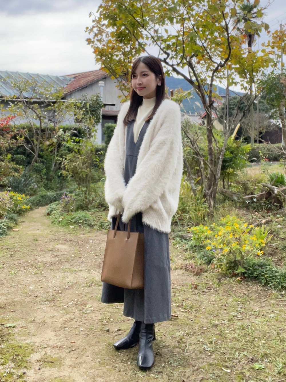 ふわふわカーディガンと合わせて、ガーリーに♡ デートにピッタリです🥂 Instagram .. @yk.k.13 インスタもチェックしてね✉️