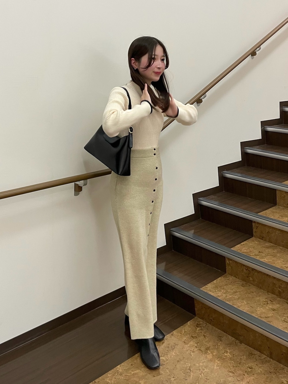 yukaのニット/セーター「前後2WAYもちもちハイネック配色リブニット」を使ったコーディネート