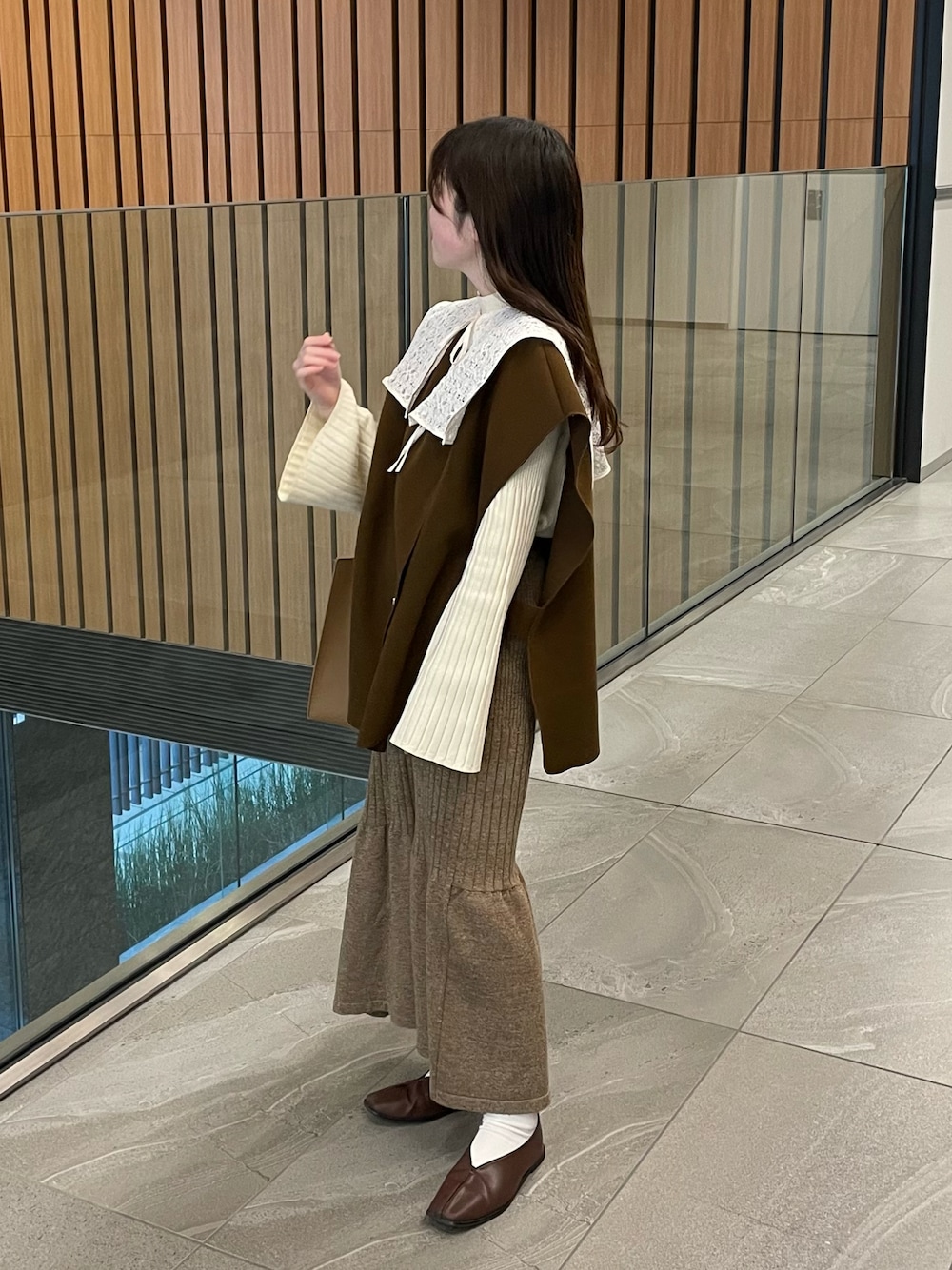 ベストに付け襟を重ねて、ガーリーに🌷 たまには淡色も着たくなる .. ♡ Instagram .. @yk.k.13 インスタもチェックしてね🕊️