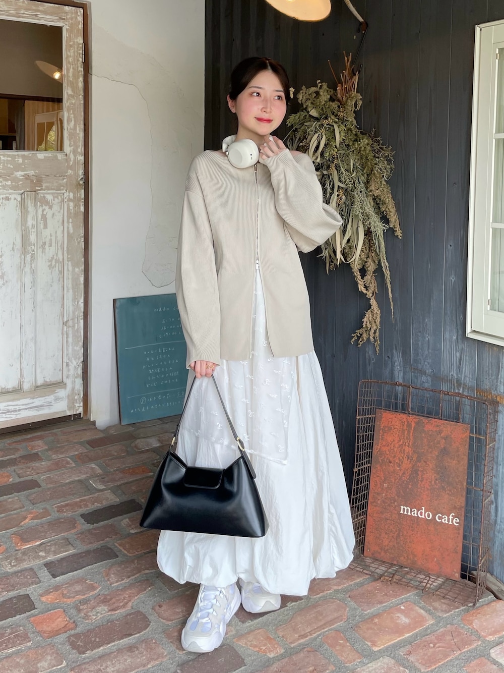 最近ハマってるヘッドホンを付けて、🎧 バルーンスカートにレーススカートを巻いて ガーリースタイルに🎀🤍 Instagram .. @yk.k.13