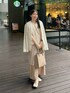 ワンピースにレースを巻いてレイヤードスタイルに、♡ ジャケットのデザインもお洒落なの🪡 Instagram .. @yk.k.13