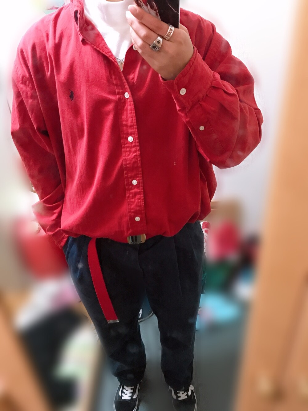 中にUNIQLOの白のインナーを着て、 上下古着。 シャツはfloridaで購入したPOLO! 下は同じくfloridaで購入したtommy! 上下tommyで揃えたかったけど持ってない🥶 靴は安定のoldskool👍
