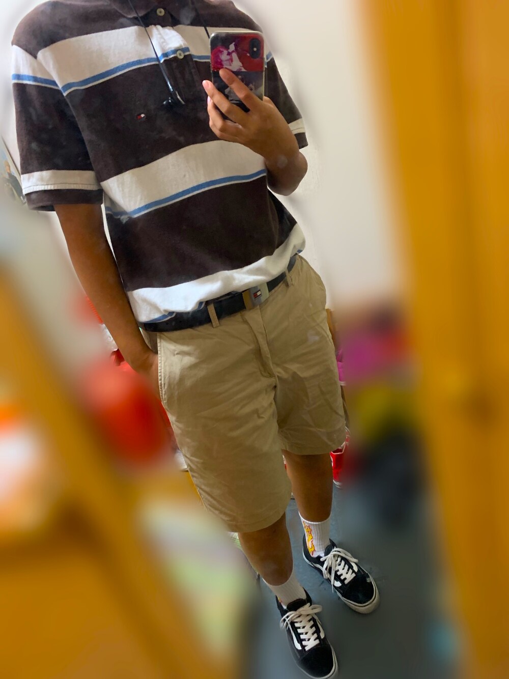 上のtommyのポロシャツは古着で500円、夏に使い勝手の良いパンツは古着で280円!!! ベルトもtommyで揃えました。 バイトに行っただけです、笑