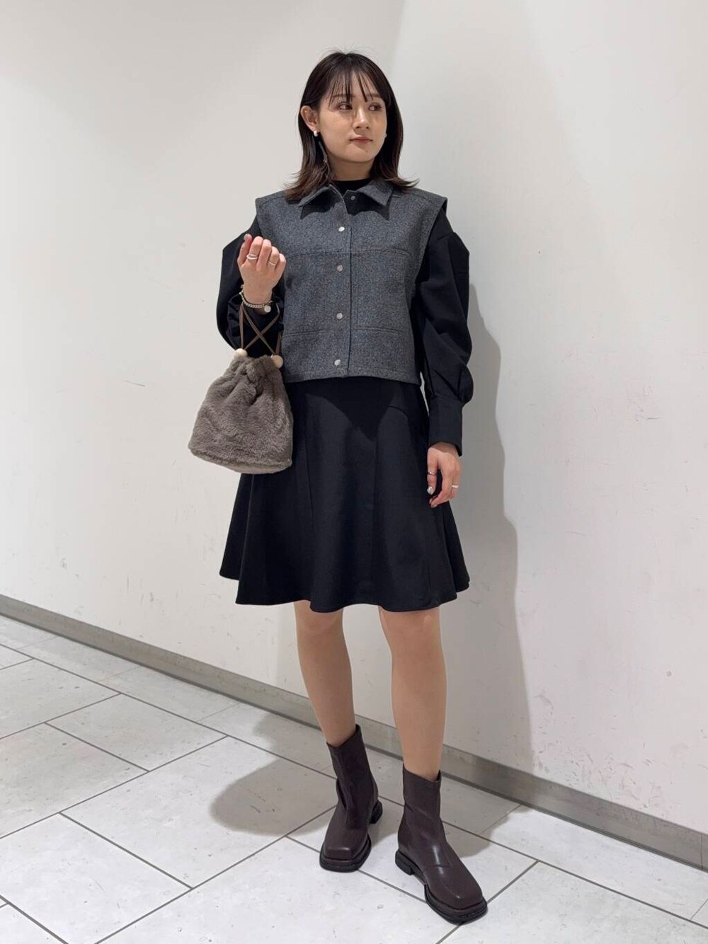 あおい(URBAN RESEARCH Store minamoa広島)のブーツ「スクエアトゥフラットブーツ」を使ったコーディネート