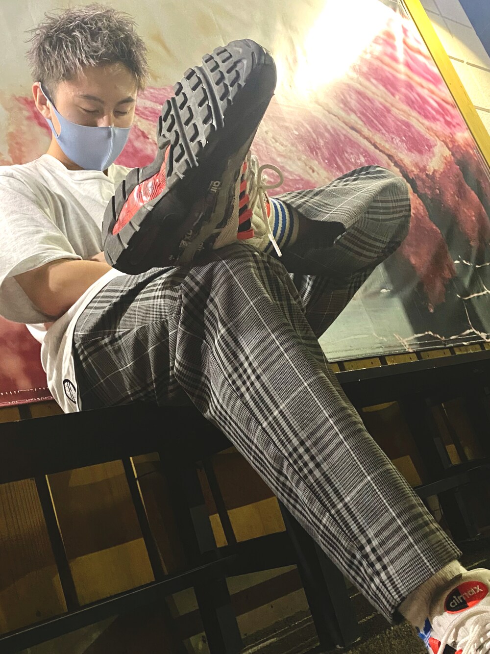 ライトグレー×チェックパンツ(グレー) インスタ @yabe_soutaaa フォローお願いします🤲