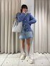 デニムミニスカートを使って寒色系でまとめたコーディネートです◝✩ スクエア型のミニスカートとバランスを取るためにカーディガンを片方インスタイルにしました🐩 ⭐各アイテムのおすすめポイント  ̄ ̄ ̄ ̄ ̄ ̄ ̄ ̄ ̄ ̄ ̄ ̄ ̄ ̄ ̄ ̄ ̄ 【トップス】 ・程よいラメがコーディネートのアクセントになります! ・柔らかい素材で着心地がとても良いです😭 【ボトムス】 ・春の予感を感じるデニムミニスカート!裾のカットデザインでこなれさupです! ・広がりすぎない台形シルエットで着痩せ効果ありですෆ 【スニーカー】 ・とにかく軽い!今年らしいボリュームのあるスニーカーです ・ミニボトムと合わせるとスタイルupさせてくれます😭 使用アイテムはすべてこのページの下からチェック、ご購入できます🕊💌是非お買い物楽しんでください♡!