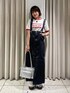 ご覧いただきありがとうございます!🩷 赤ロゴを差し色にカジュアルコーデ🍎 ブラックラメのジャンスカで大人さもプラス! ジャンスカは丈感調節が可能で、インナーを変えながら長く着れるアイテムです♡ 使用アイテムはこのページの下からチェック・ご購入できます🪽 Instagramものぞきにきてください⛵️