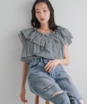 yuico(LOWRYS FARM ららぽーと福岡)のシャツ/ブラウス「クロスギャザーブラウスフレンチスリーブ 136140」を使ったコーディネート