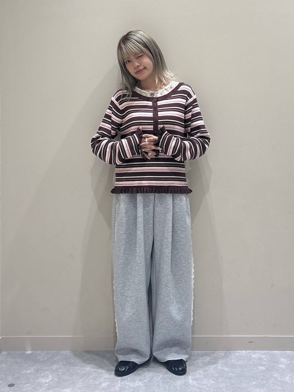 157cm 骨格ウェーブ トップス トレンドのボーダー×チビフリルで1枚で映えるトップス。 首元もスッキリしているので、着痩せ効果も🪄︎︎ 骨格ウェーブさんはインナーを仕込むのもおすすめです◎ リブで伸縮性もあり、着心地もよいです♩ ボトムス ローリー人気のカットイージーコクーンパンツ。 サイドのさり気ないフリルがポイントで、いつものコーデに取り入れやすいデザインになっています。 使用アイテムはこのページの下からチェック・ご購入できます🪽 staffboard更新中!フォローお待ちしております✉️ Instagram