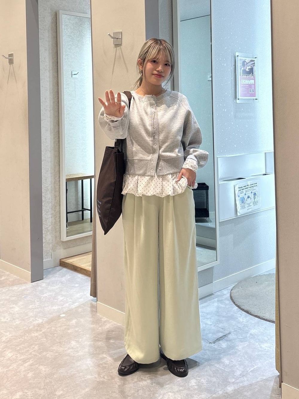 🏷️人気新作アイテムでトレンドコーデ🐩 157cm 骨格ウェーブ 【トップス】 インナーは入荷早々大人気のドットチュールトップス! レイヤードコーデはもちろん、春に1枚で着るのも楽しみなアイテム🎵 カーディガンは前後2way、リバーシブル、と着回し力抜群の短丈カーディガンです! 【ボトムス】 サラッと素材のサテンワイドパンツ☘️ ウエストはうち紐つきの総ゴム使用で楽ちんです! 春らしいパステルカラーがおすすめ✩ 使用アイテムはこのページの下からチェック・ご購入できます🪽