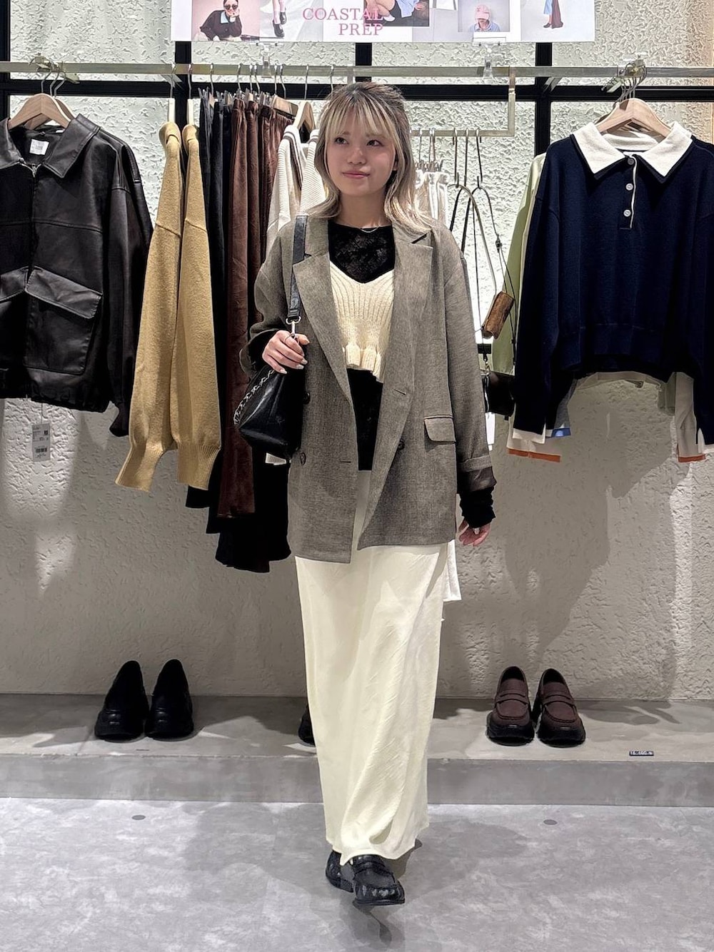🏷️トレンドカラーで大人きれいめコーデ イエローは今年のトレンドカラー🙂↕️大人気のストレッチサテンスカートはウエストが総ゴムで楽に着用いただけます。3サイズ展開で身長に合わせて選びやすいのも嬉しいポイント! インナーにもトレンドのレースを仕込んで、ニットビスチェとのレイヤードコーデ! 春マストバイのジャケットを羽織れば、リアルに今着れるコーデの完成です🙂↕️ 使用アイテムはこのページの下からチェック・ご購入できます🪽