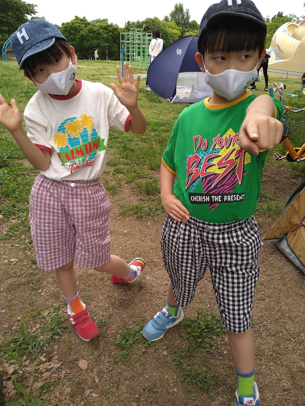 マーキーズのTシャツは吸水速乾で汗かきの子供には、これからの季節に嬉しいです。 同じシリーズで珍しく柄違いにしました。
