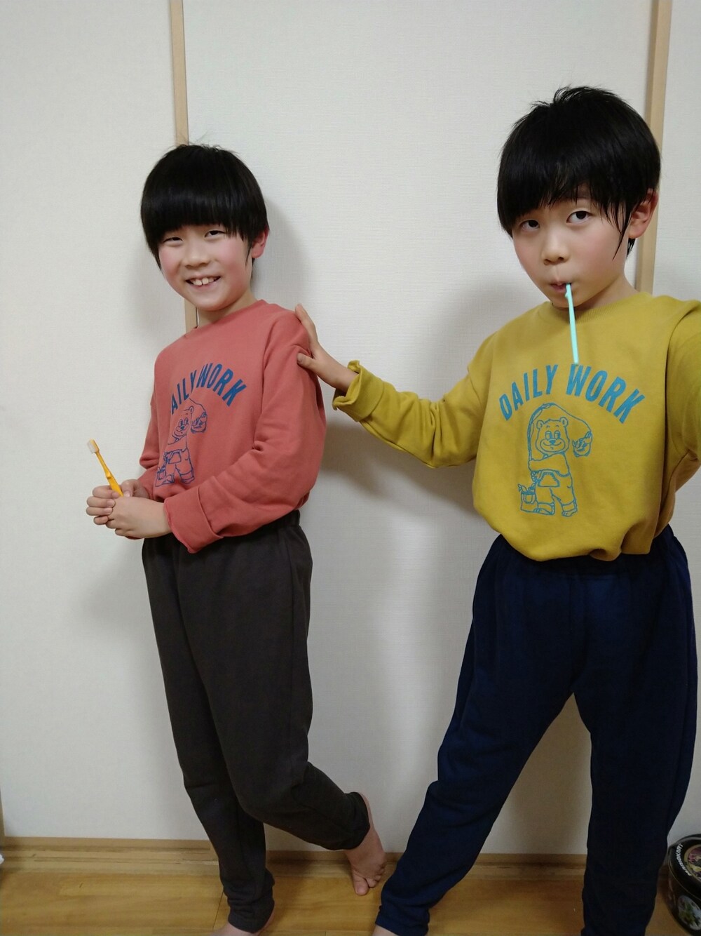 暖かくなってきたので、モコモコパジャマからスウェットタイプに変えました〜🌸