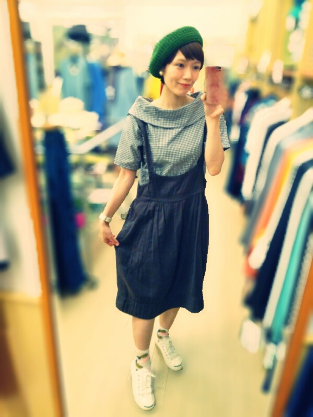 ギンガムのブラウスは母からのおさがり♩ おふくろの味、ではなく、おふくろの服…?笑 着ると心なしかほっとするような気がします♡(ت)