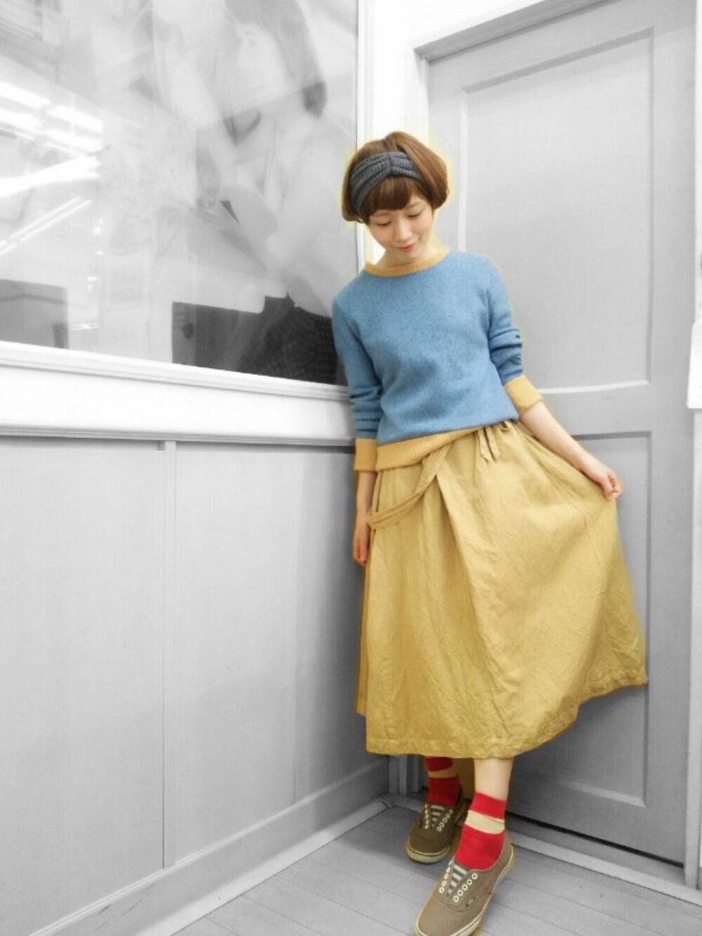 ニット以外は同じコーデでスミマセン(,,> <,,) REACの水色ニットが入荷したので、早速試着✩⃛ 即お取り置き決定の可愛さ♩♬
