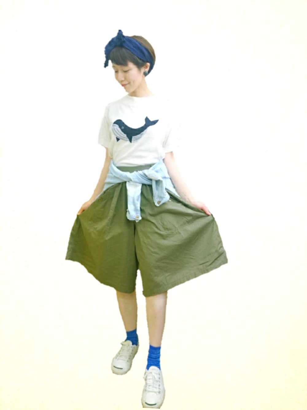 こんにちは☺✨ご覧いただきありがとうございます♥ そして、いつもいいね、セーブ、followありがとうございます (*´_`*) 梅雨入りしたとは言え、雨がお休みの日は夏の暑さですね☀🌴 そんな日は迷わず夏先取りコーデしたくなりますね ♡(ت) 今日はくじらのサマーニットで夏休み気分に🐳笑