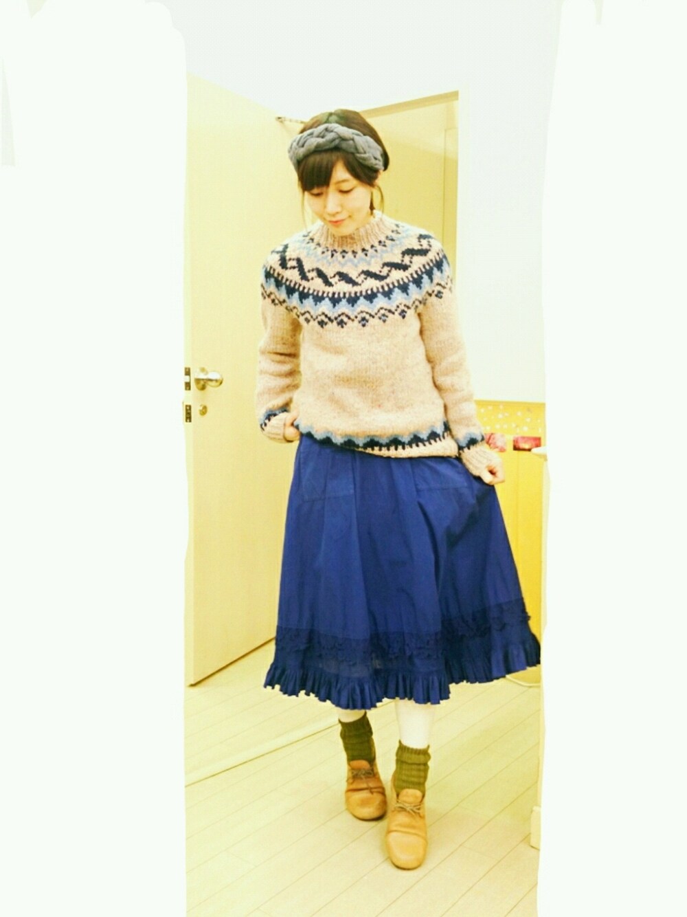 ご覧いただきありがとうございます (*´―`*) ひさしぶりのアップなので、ちょっとどきどき☺☺ 寒いのは苦手だけど、寒くなるまでおあずけだっだフェアアイルニットをやっとこ着ることができました。。✨ 北欧製ならではのあたたかさとほっこりな柄にうっとり。。 🙈💕