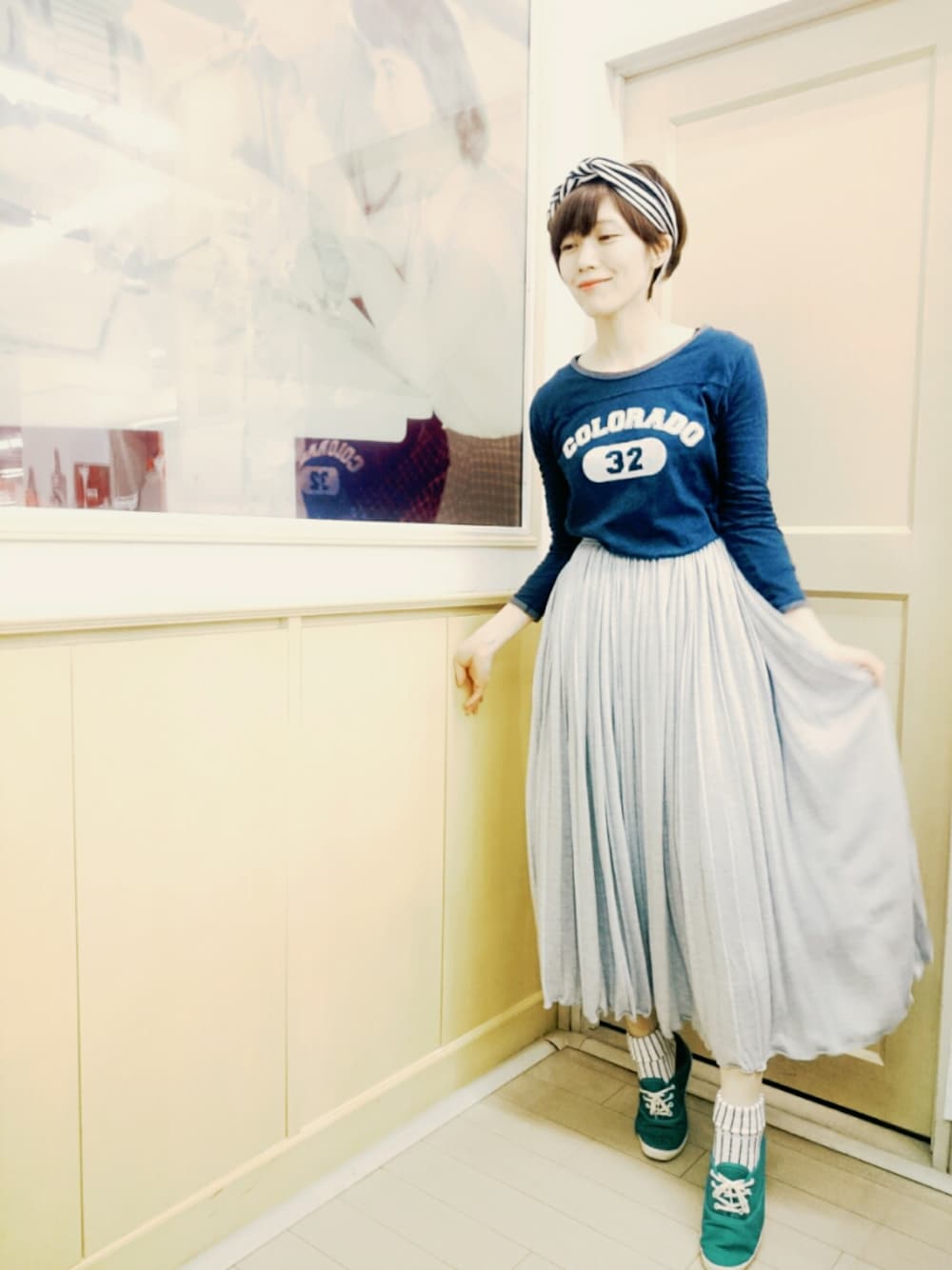 ご覧いただきありがとうございます☺ ロゴワンピースをinしてマキシスカートをカジュアルに☆٩ʕ*˙ت˙*ʔو プリーツスカートもカットソー生地だとほどよく力が抜けて、コーデの幅が広がりそうです⁄(๑´﹏`๑)⁄