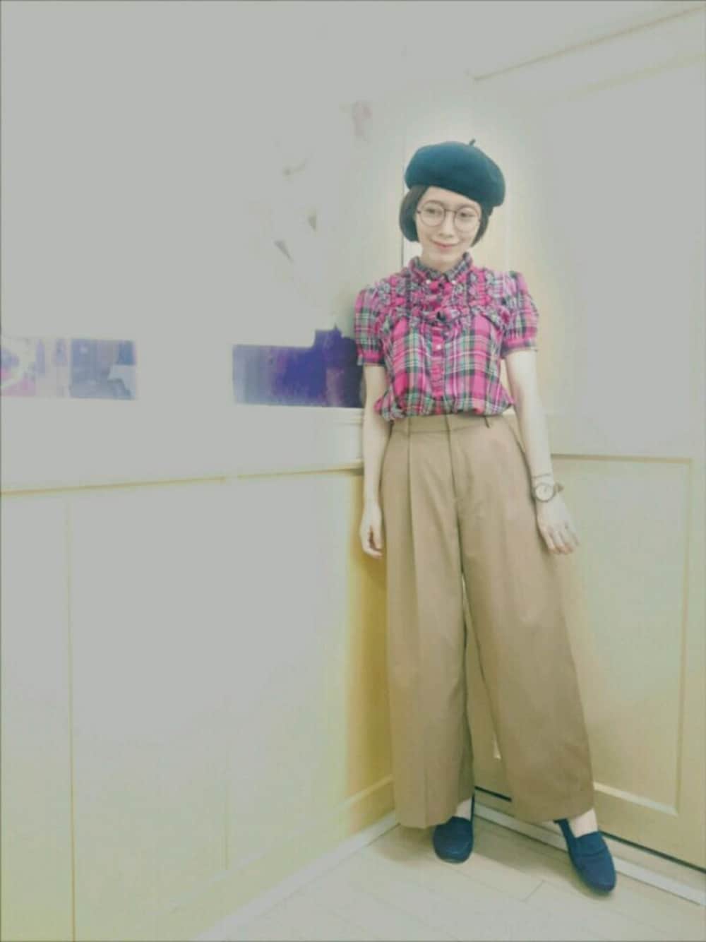 ご覧いただきありがとうございます(*´―`*) 今日のテーマは見たまんまの絵描きさん🎨 チェックのパフブラウスはお気に入りで何年も着ているのですが、ワイドパンツと合わせたらなんだか新鮮なかんじになってくれた🍈🍈 ベレーとメガネでいかにもな絵描きさん、むしろ漫画家さんかな?になりきってみました😁😁😁 足元はわかりにくいですが、網ソックスをはいてすこしだけ夏の名残を残しました🍉笑 Instagram 日々のきろく👉☺@aha3020 ようふくのきろく👉👚@wear__aha__ お気軽に..Please follow me🎈