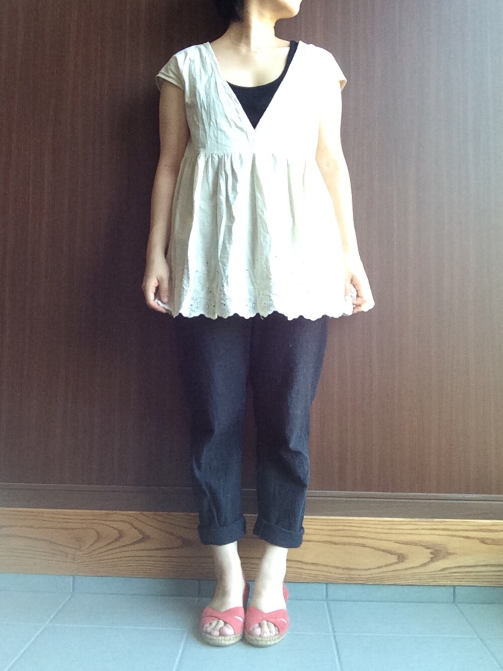 スカラップ裾のトップスを作りました。まだまだまだ半袖…!