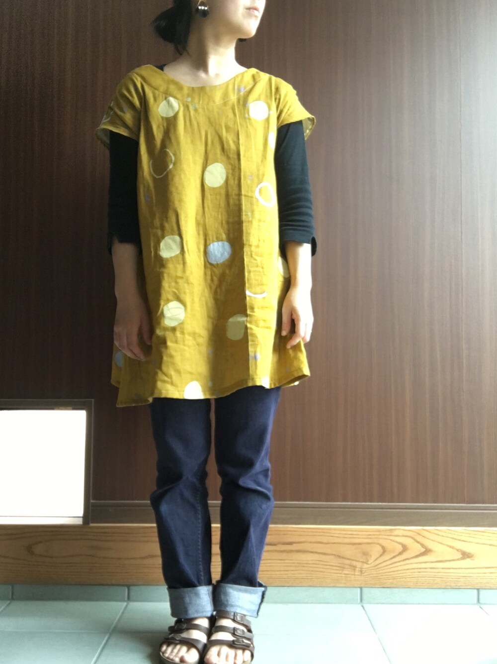 春っぽい色ではないけど、からし色の生地で作ったチュニックがお気に入り。