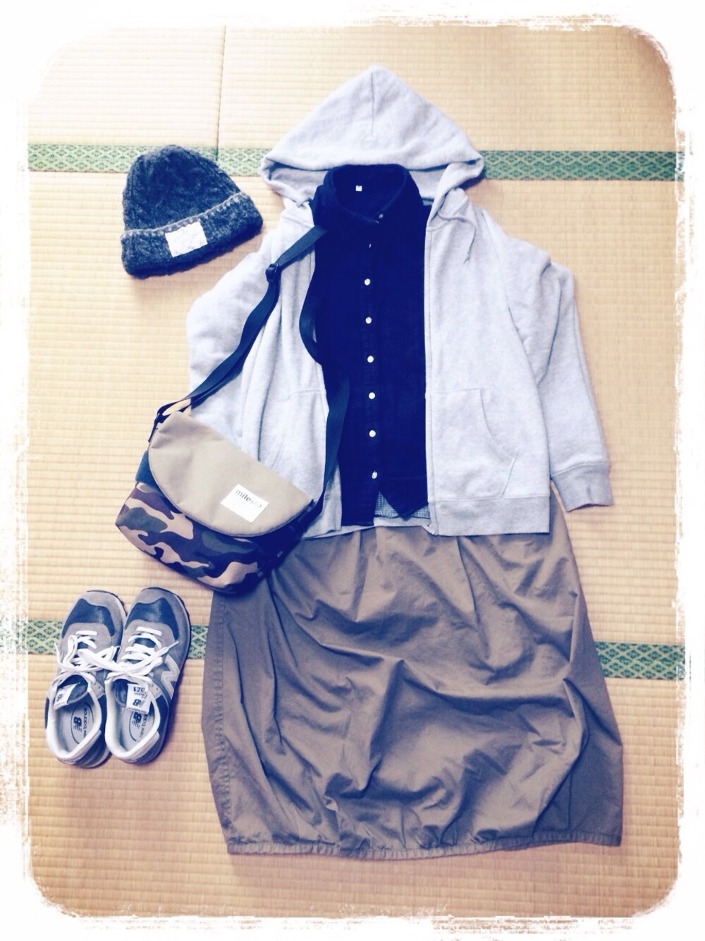 パーカー:UNIQLO シャツ:無印 スカート:YARRA バック:milest ちょっとそこまでお買い物☆