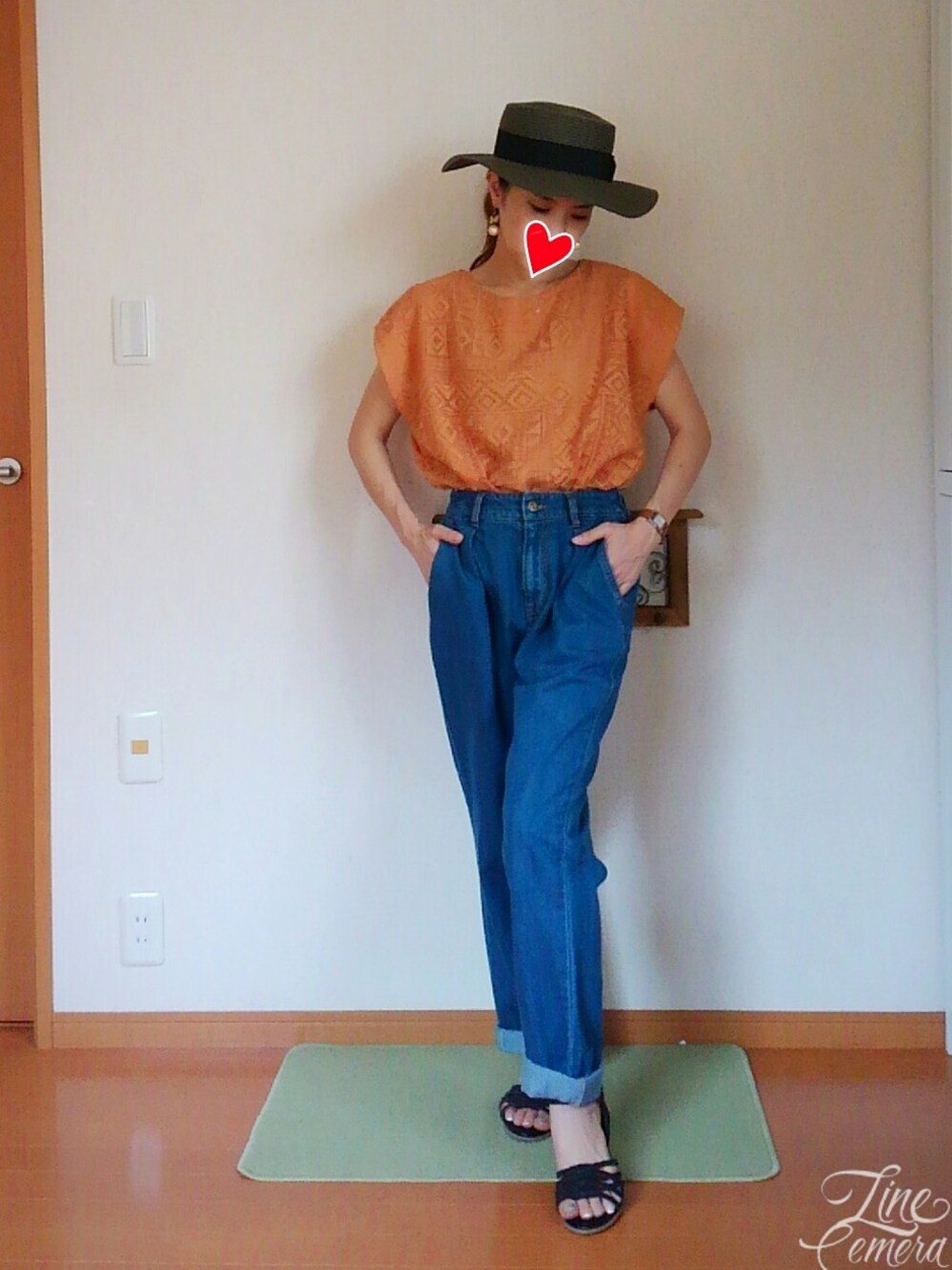 rinnaのハット「◆ツバヒロカンカン帽」を使ったコーディネート