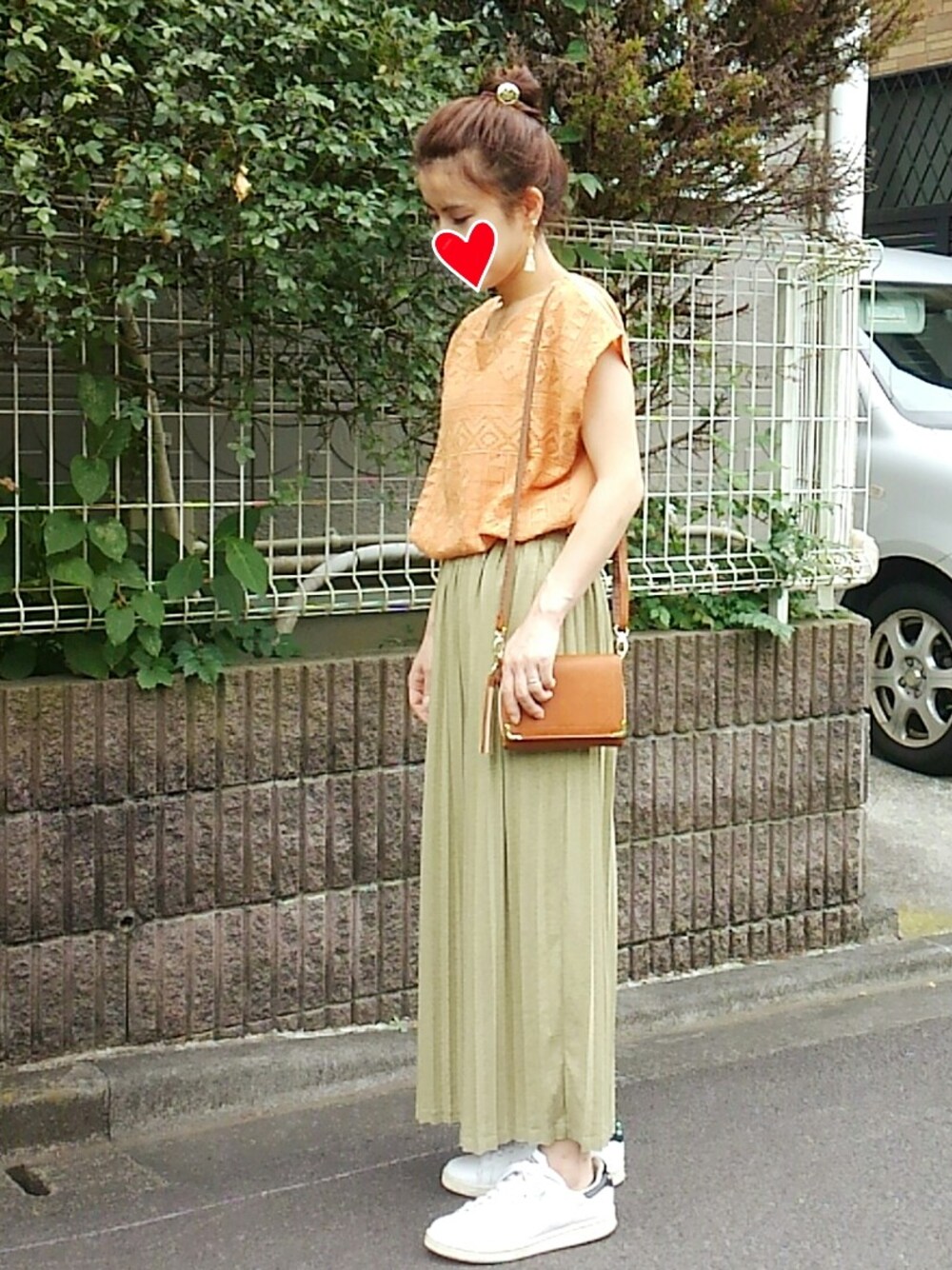 先日の休日コーデ😉👍 クロネコちゃんに荷物を出しに行くところ🐱 今日も次女に外撮りしてもらいました😆 姿勢悪いのが写真に撮るとよくわかりますね😰 胸を張ってピンと背筋を伸ばした綺麗な立ち姿に憧れます‼ いつも見て頂きありがとうこざいます😌❤