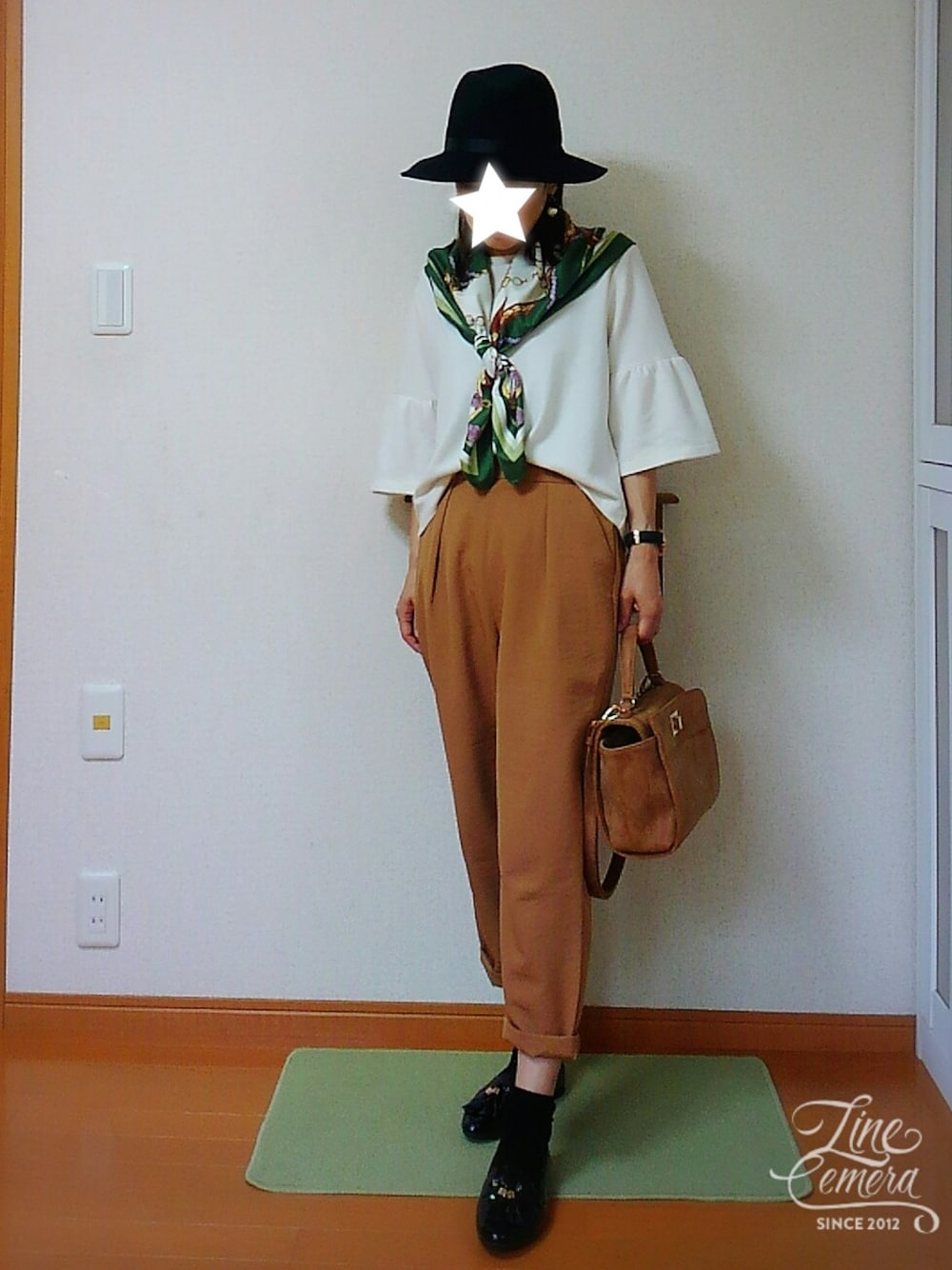 先日のコーデ😆 いつもご覧いただきありがとーございます😉💖 白×ベージュに小物や靴、帽子を黒にして秋っぽくしました😊👍 スカーフと帽子、どっちも付けたり、かぶったりしたから、ちょっとうるさくやり過ぎ感満載になったので 日中はスカーフをたたんでうるさくならないように付けてみたり、外してみたりあれこれ変えて落ち着かない一日でした😅