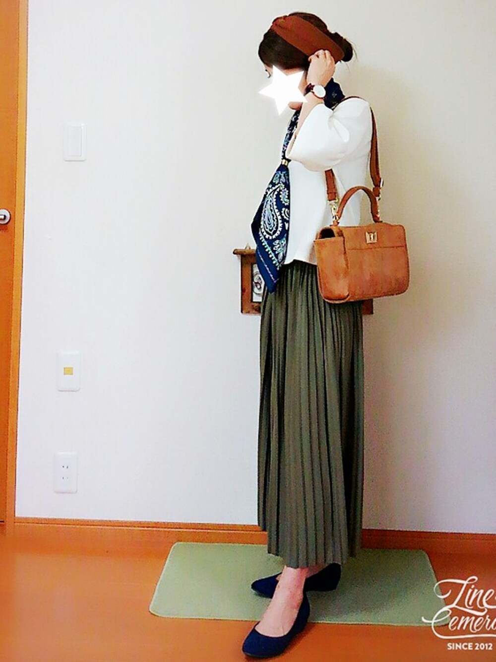 先日の休日コーデ😆 やっとGETしたプチプラ幅太リング💍でスカーフをとめてみました😉👍 ちょっとお出かけな感じの休日スタイル HusHusHのブルーのパンプスめちゃくちゃ履き心地よくてぜーんぜん足が痛くなりません😆‼‼ いつも見てくださいましてありがとーございます😊💓
