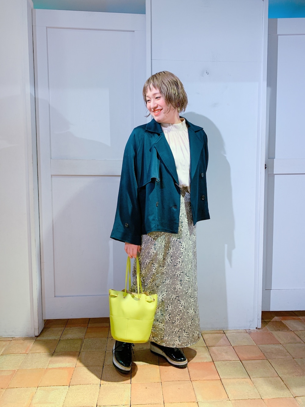 愛きちのトレンチコート「テンセルレーヨンショートトレンチコート/スプリングコート/ビッグシルエット/スプリングコート/アウター/ジャケット/フォーマル/結婚式/入学式」を使ったコーディネート