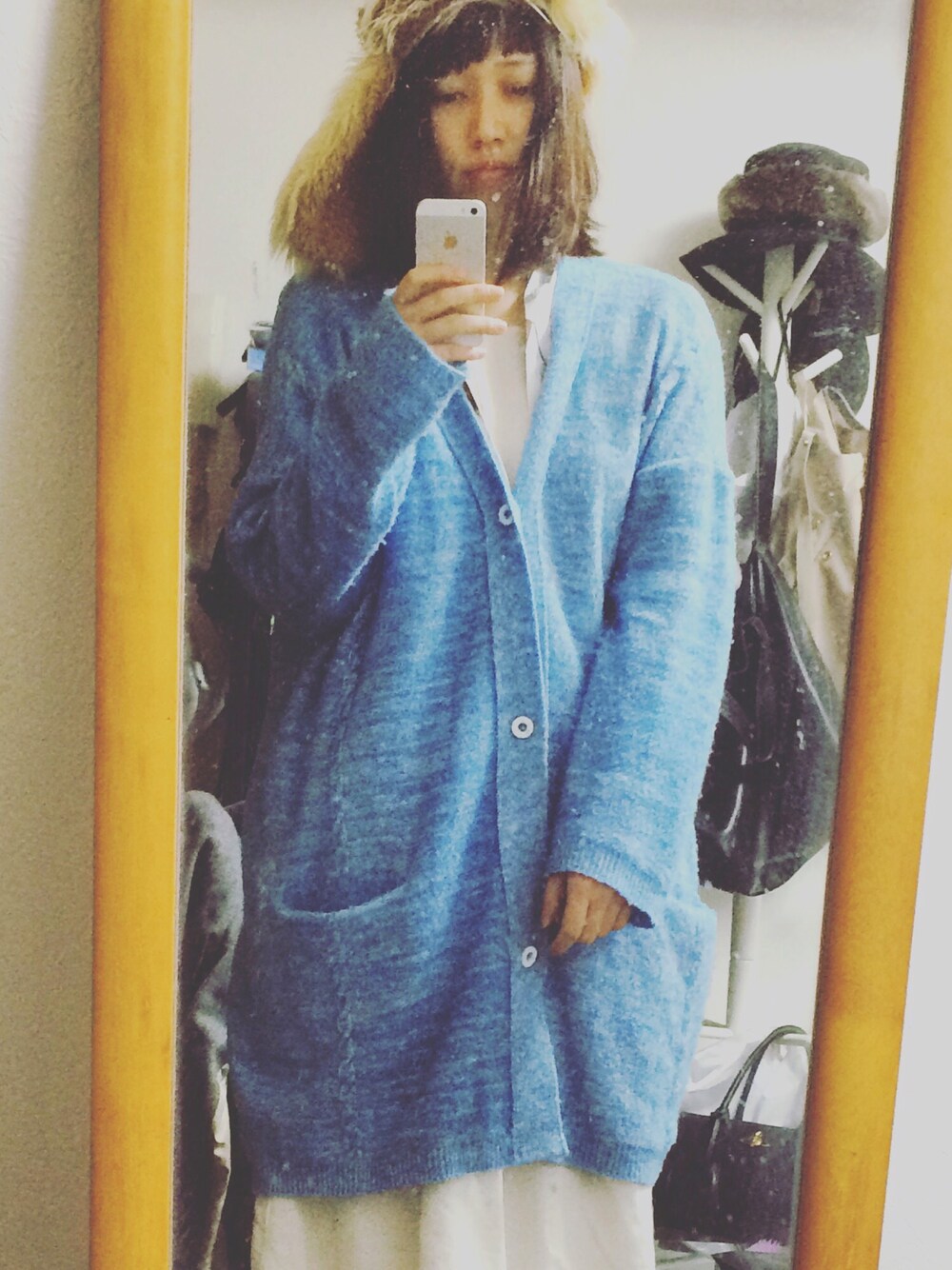 ブルー系のその他アウターを着用したレディースの冬コーディネートの1枚目の写真