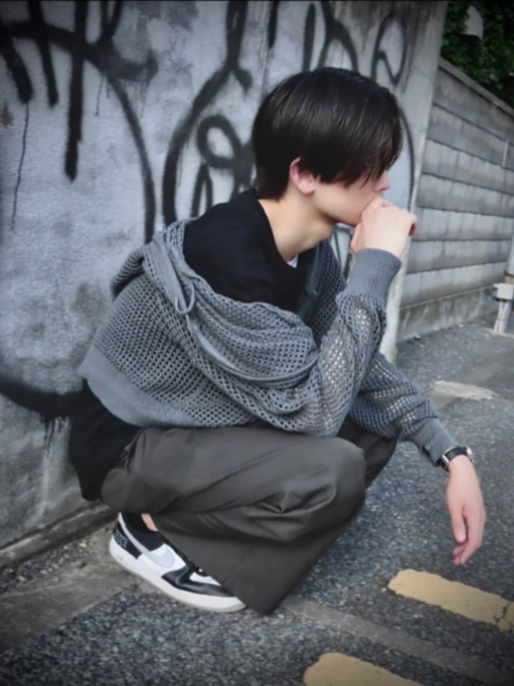 yushiのパーカー「【CLEL】Watermark Knitting Mesh Zip Parka/透かし編み メッシュジップパーカー」を使ったコーディネート