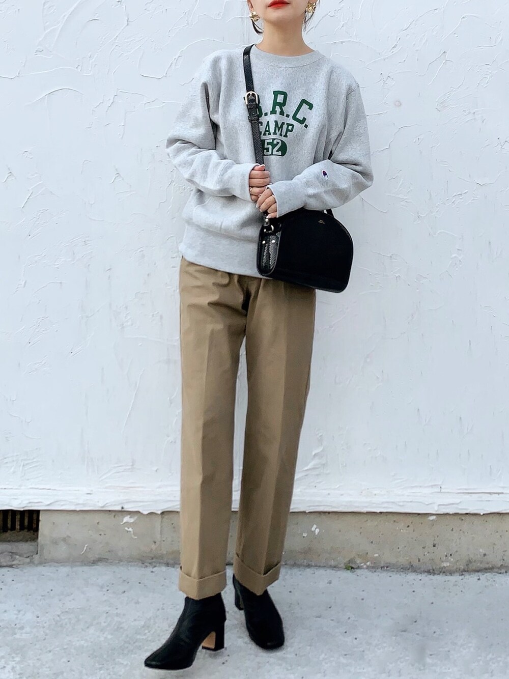 𝙔𝙐𝙆𝙄のスウェット「【Champion / チャンピオン】CREW NECK SWEAT PRINT」を使ったコーディネート