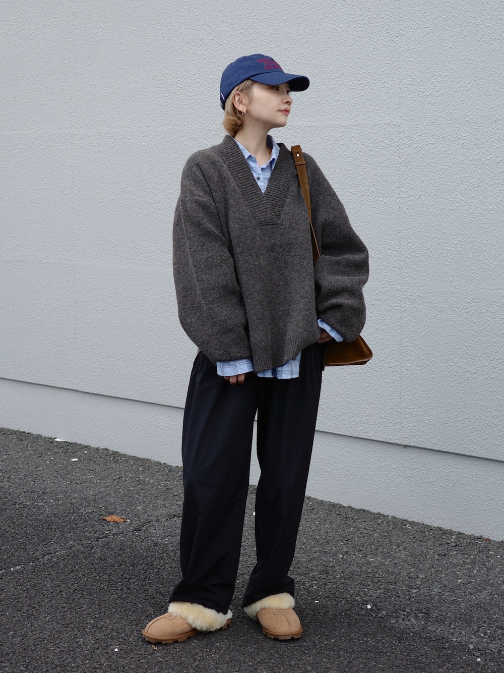 𝙔𝙐𝙆𝙄のニット/セーター「【ふんわりもっちりボリュームニット】/ディープVネックニット / オーバー サイズニット」を使ったコーディネート