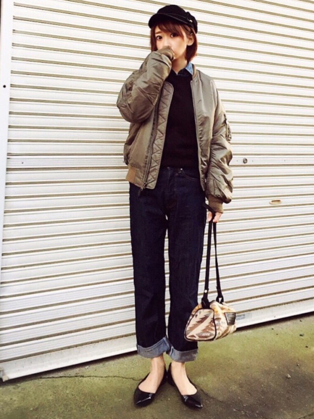 𝙔𝙐𝙆𝙄のMA-1「JEANASIS別注 Schott MA1/723402」を使ったコーディネート