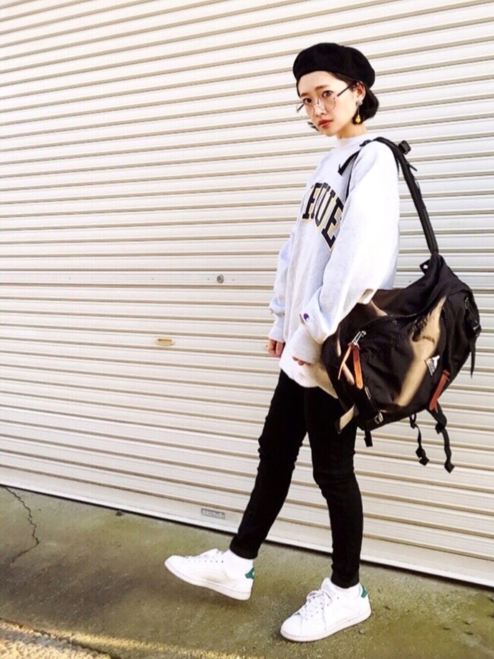 ご覧いただきありがとうございます✨ リアルコーデ😉 オーバーサイズのスウェットはワンピみたいで楽です! シンプルにエンポリアムの黒スキニー🌸 イッカのベレー帽は春夏仕様です👍 形も良くておすすめです✨