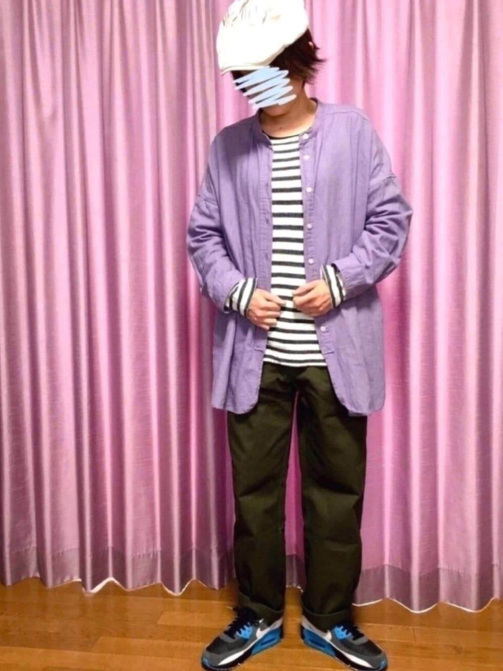 背景と色味が近いんですが💦 パープルシャツ×ボーダーT×カーキパンツ×エアマックス90👟 少し前の投稿で、カーキアウターに合わせた、チャコールパーカーが光の加減でパープルに見えて、izuさんとのコメントで「パープルとカーキ合うって分かったね」とゆうやりとりが有り😃→上下でパープルとカーキ🟣🟢コーデ。 そして、りゅっくさん😊先日コメントで書いたパープルコーデです🙋♀️ …結局ボーダーを使って落ち着き安心してしまう自分😅 ご覧頂きありがとうございます🍀前回コーデ、素敵なフォルダに入れて頂き嬉しく感謝です🌸