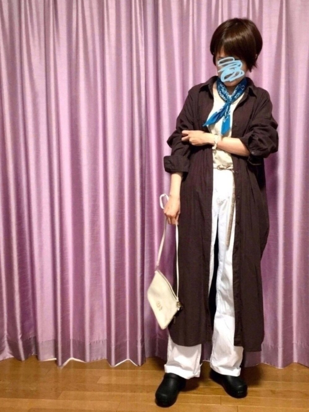 シャツワンピ×白パンツ +ゴールドの細ベルト バンダナは、また、ビーズで作った指輪💍でとめました。 シャツワンピは羽織りに使うのと、前のボタンを閉じて使うのとでは全然雰囲気が違います✨ …さて、休業が(予想通り)延長となりました💧 元々朝が弱いので仕事がないと夜型になりがち。。 日中は近所へ出来るだけ歩きで買い出しに行ったり、時々ママ友さんとウォーキングもしてますが…一気にいろんな部分が老化してると思います😨 WEARは、今、自分の老化防止も兼ねてます笑。いつまで続くかな😅(スマホ古すぎて調子悪い) ご覧頂きありがとうございます🍀素敵なフォルダへの追加も嬉しく感謝です✨