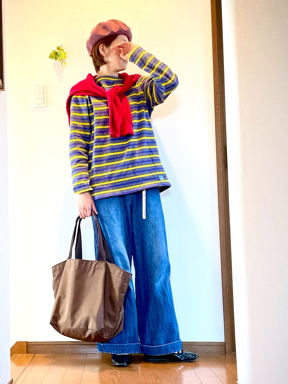 バスクボーダーT×フレアデニム カーデ肩掛けにベレー帽でフレンチカジュアル🌈 …やっぱり、ボーダー🙄 垂らした細ベルトは、くすんだゴールドです🌟 友達が誘ってくれて、初めてモーニング食べに行った隣市のレストラン。こんな場所にあったんや👀と入ってみたら、 多分40年前?からはあったような店構え。 モーニングとゆうよりブランチかな🥗 デニッシュ🍞も美味しかったなぁ✨ ご覧頂きまして、本当にありがとうございます🥖🍞🥖🍞