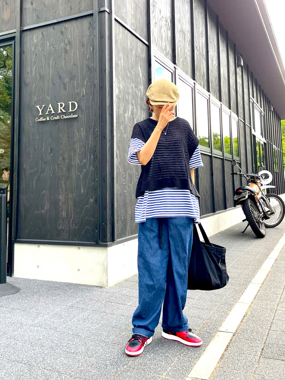 ボーダーT×メッシュベスト×ラップデニム 2週間程前、、 お洒落⚫️⚪️な建物のカフェ☕️で。 GUのメッシュベストはかなり久々に着ましたが、重ね着やはり暑い💦 🏷#ナツイコーデを全部見せ ケンさん、まっちゃん宜しくお願いします✨ この日。ネックレス、ハンチング、トートバッグは五年以上前に買ったものでした😅 💎ネックレス…約20年前、初めての結婚記念日に買いました。 (UZUと言うブランド。好きだったので何個かアクセ持ってるけど、おそらく今は店舗が無い😢) 🧢ハンチング…旦那の物を兼用。多分15年位前に購入。 👜バッグ…お出かけの時にヘビロテのトート。5〜6年前に購入。 (このデザインは現在も店舗で販売) 我が家には、10年以上前に購入したアイテムがまだまだ沢山あります🤔 ご覧頂きまして、本当に有難うございます☕️✨✨✨