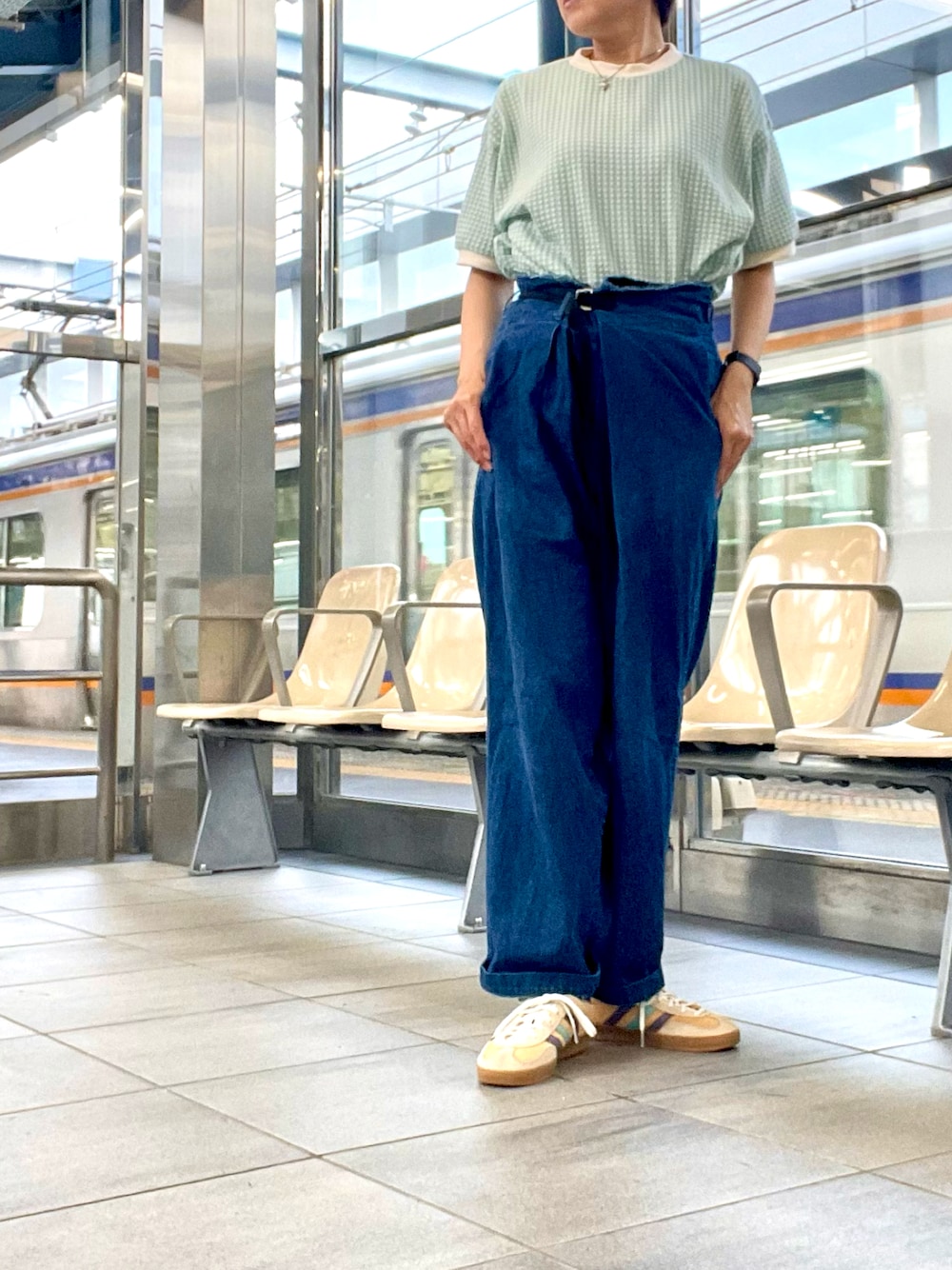 ike mieのスニーカー「adidas アディダス GAZELLE INDOOR ガゼルインドア IG1636 GLOO/SHAV/OWHI」を使ったコーディネート